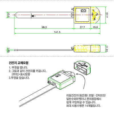 °ÇÀüÁö¸¦ ÀåÂøÇϸé ÀÛµ¿ÀÌ ½ÃÀ۵˴ϴÙ. 3ÃÊ ÁÖ±â·Î ºÐÀÇ ¼öºÐ»óŸ¦ ÃøÁ¤ÇÏ°í ¼±ÅÃµÈ ¹° °ü¸®±âÁغ¸´Ù °ÇÁ¶Çϸé Àû»ö, ÀÌ º¸´Ù ½ÀÇÏ¸é ³ì»öLED°¡ Ç¥½ÃµË´Ï´Ù